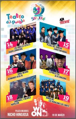 Wednesday, March 14: Los Ángeles Azules and Grupo Cañaveral Thursday 15: Cristian Nodal and Los Plebes del Rancho Friday 16: Jorge Medina and the brothers VMore >>